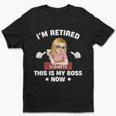 Retired, But She’s In Charge - Family Personalized Custom Unisex T-shirt, Premium T-shirt, Hoodie - Appreciation, Retirement Gift For Coworkers, Work Friends, Couple, Family Members - BlackThese exquisitely personalized shirts will make your day a little extraordinary and meaningful. They're also great gifts for Mother's Day, Father's Day, Birthdays, Christmas, Halloween, and other significant events to make your loved ones feel even more special.Product details: Material: Basic Tee: 100% cotton...