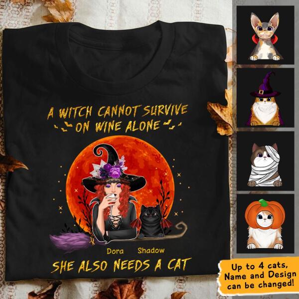 A Witch Cannot Survive On Wine Alone Personalized Cat T-shirt TS-NN60