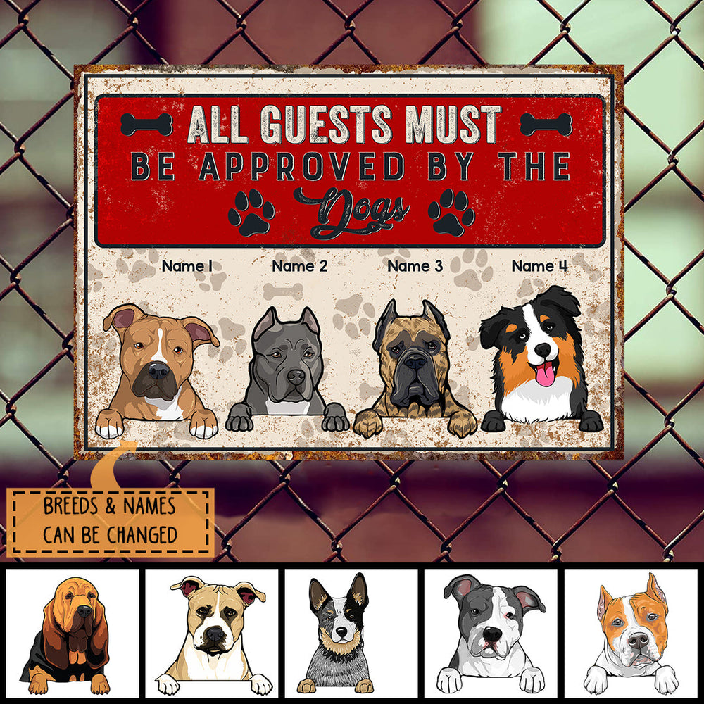 All Guests Must Be Approved By The Dogs, Pawprints & Bones Sign, Personalized Dog Breeds Metal Sign, Outdoor Decor