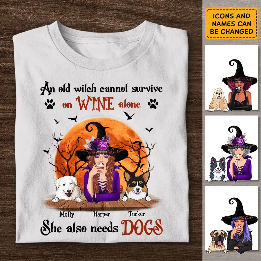 An Old Witch Cannot Survive On Wine Alone - Personalized T-Shirt - Halloween TS - TT3869