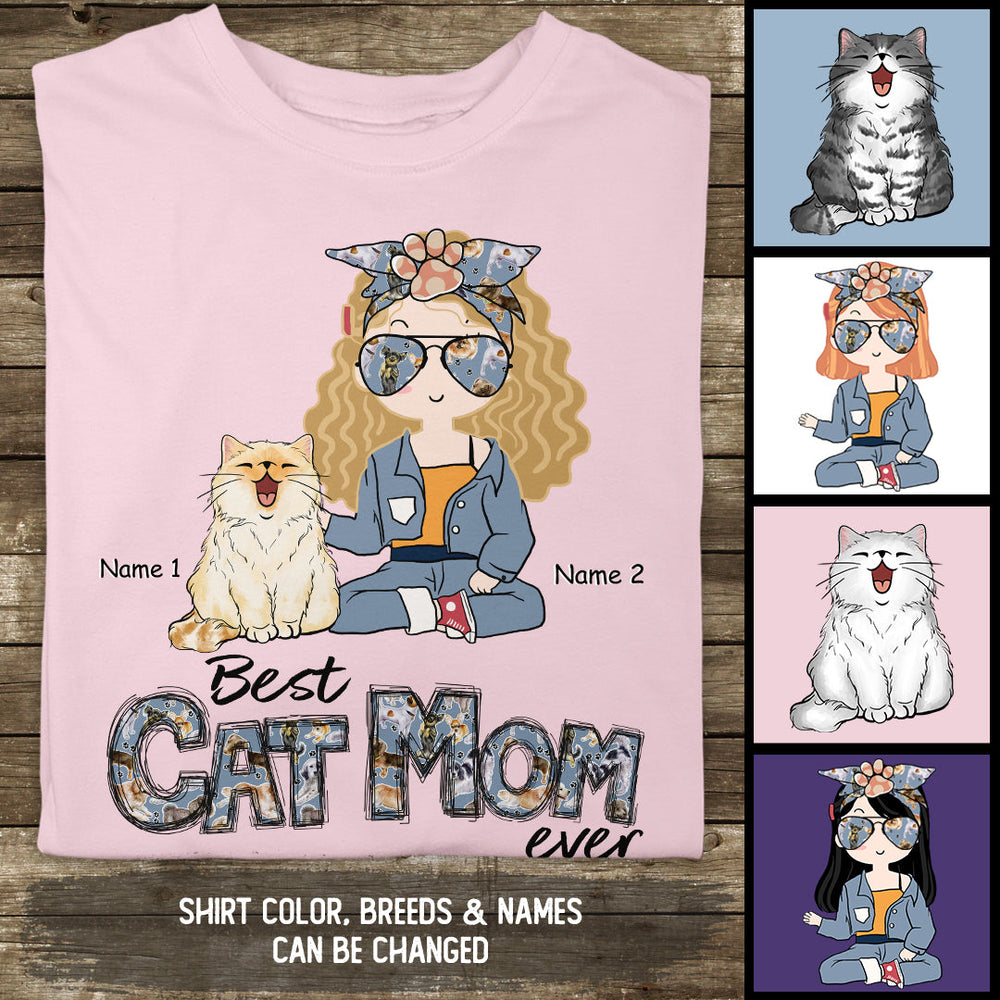 Best Cat Mom Ever, Vintage Style, Cat Mom T-shirt, Cat Mom & Her Cats, Personalized Cat Lover T-shirt