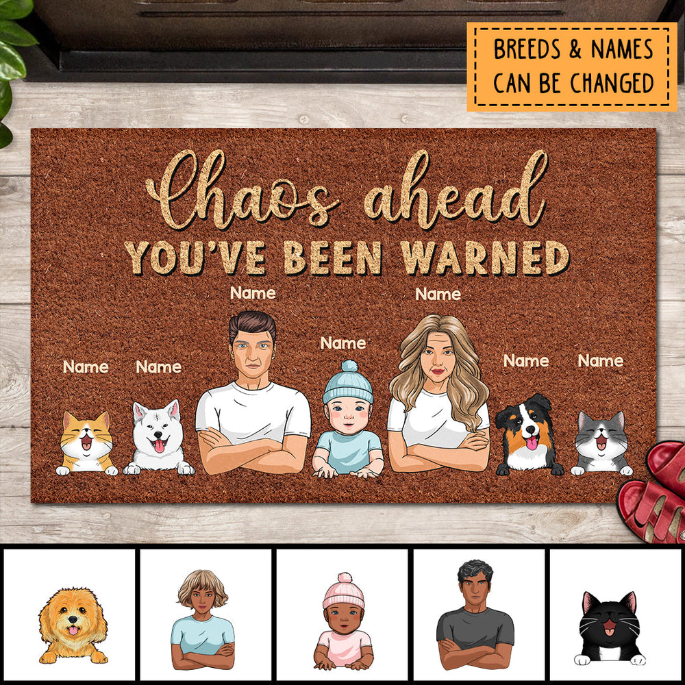 Chaos Ahead You've Been Warned, Cool Family, Home Decor, Welcome Mat, Personalized Dog & Cat Lovers Doormat