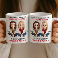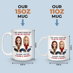Custom Mug - Personalized Best Friend Birthday Gifts For Women, Besties, Sisters, BFF - Always My Sister, Always Chosen