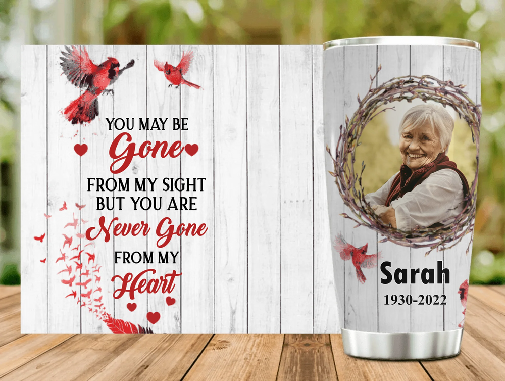 Custom Personalized Memorial Tumbler - Upload Dad/Mom Photo - You May Be Gone From My Sight But You Are Never Gone From My Heart