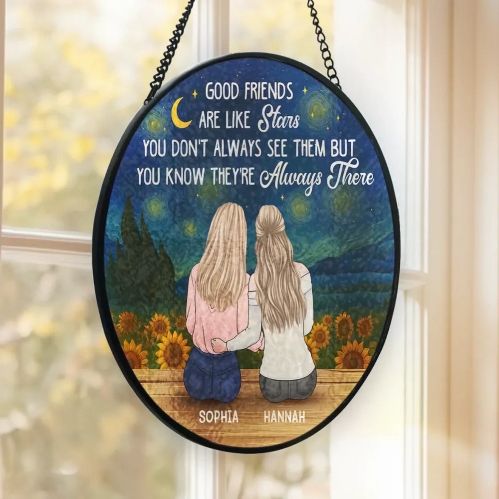 Custom Stained Glass Window Hanging Suncatcher - Personalized Best Friend Birthday Gifts For Women, Besties, Sisters, BFF - Together Is My Favorite Place