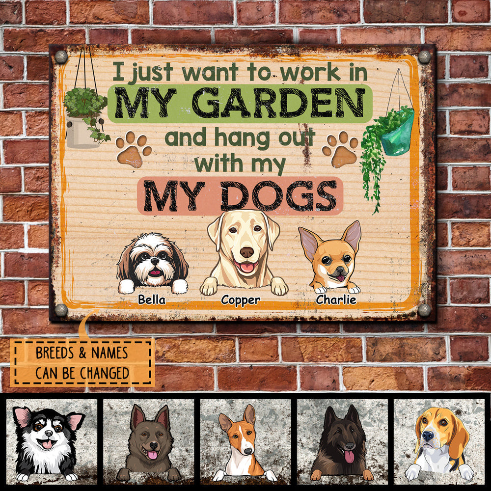 Metal Garden Sign, Gifts For Dog Lovers, I Just Want To Work In My Garden And Hang Out With My Dogs