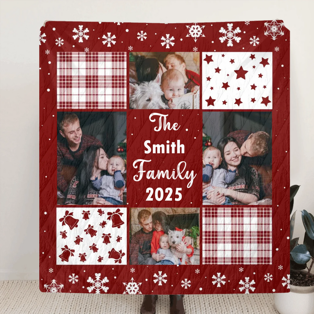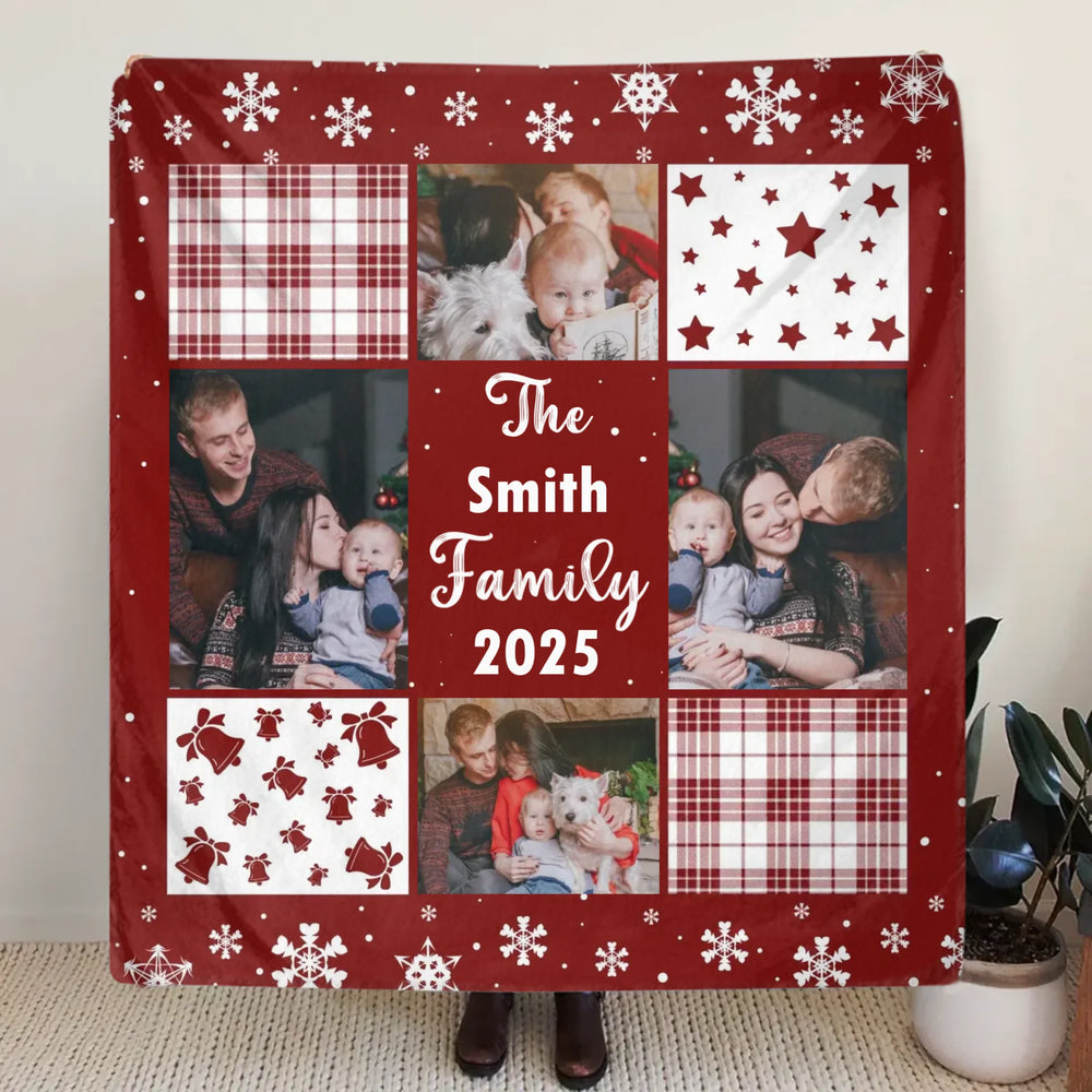 Personalized Family Quilt/Fleece Throw Blanket - Christmas Gift Idea For Couple - Upload Photo