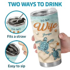 Two Turtles, One Heart - Couple Personalized Custom Tumbler - Gift For Husband Wife, Anniversary