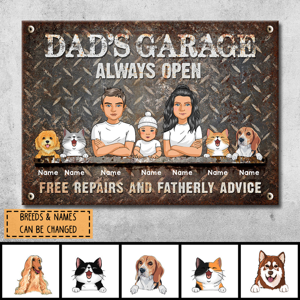 Welcome Metal Garage Sign, Gifts For Pet Lovers, Dad's Garage Always Open Free Repairs And Fatherly Advice Funny Sign