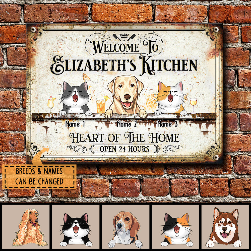 Welcome To My Kitchen Heart Of The Home, Welcome Sign, Personalized Dog & Cat Metal Sign, Kitchen Decor